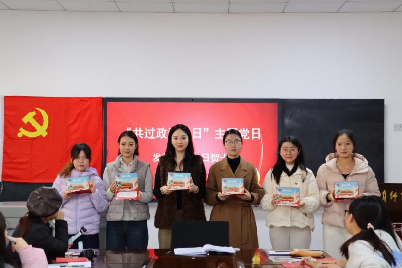 会上,谢依曈为全体党员和入党积极分子区分讲解了党龄和入党时间的定义,从而引出“政治生日”这一党日活动主题。在《国际歌》的激昂旋律中,3位于当天一同过政治生日的正式党员,为新接收的预备党员发放教育学部党委赠送的政治生日贺卡。贺卡上印有入党誓词和党组织寄语,承载着党组织对党员的关怀与期望,提醒党员们时刻牢记自己的特殊身份,在增强党员归属感和荣誉感的同时,也激励列席会议的入党积极分子以党员标准严格要求自己,在思想与情感的共鸣中砥砺初心。在庄重而温馨的氛围中,支部同志们围绕“入党为什么、在党干什么、为党留什么”的“入党初心三问”展开深入交流,结合自身成长经历和学习实际,畅谈对党的忠诚与担当。