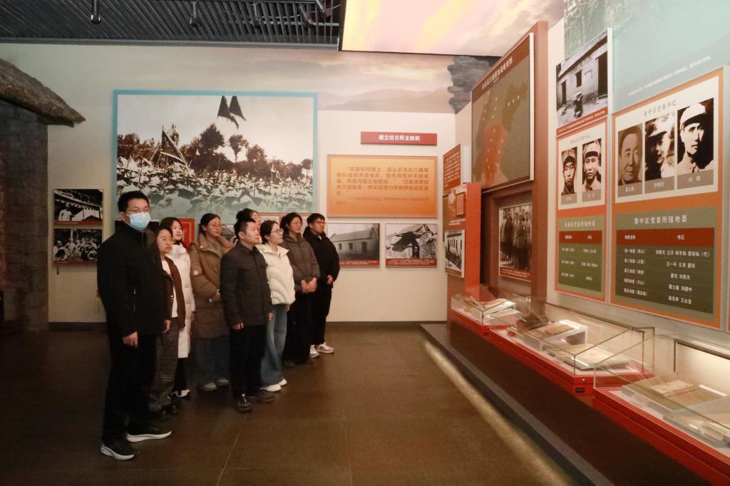 缅怀英烈忠魂,传承红色基因。在工作人员引导下,同志们有序走进沂蒙革命纪念馆,沉浸式参观各主题展区。一幅幅定格历史的珍贵图片,一件件承载记忆的革命文物,一个个感人至深的英雄事迹,如画卷般徐徐展开,生动再现了革命先辈为民族独立、人民解放事业艰苦奋斗、英勇献身的峥嵘岁月。师生党员不时驻足凝视,认真聆听讲解,主动探寻历史细节,深切感悟革命先辈那坚如磐石的理想信念与无私奉献的崇高精神。