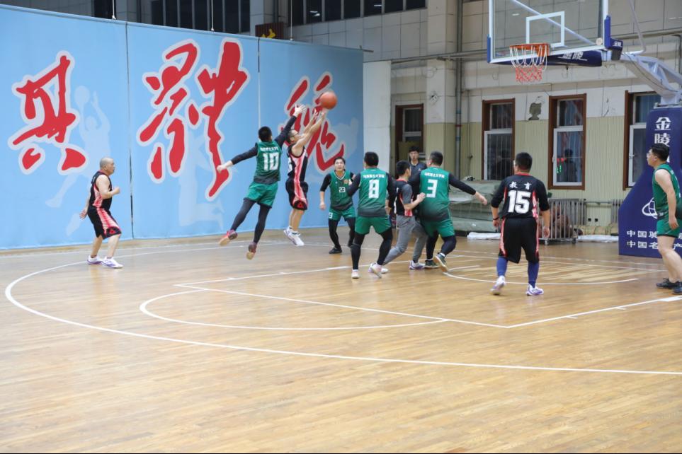 教职工篮球队以昂扬的姿态投身于这场激情四射的赛事中。