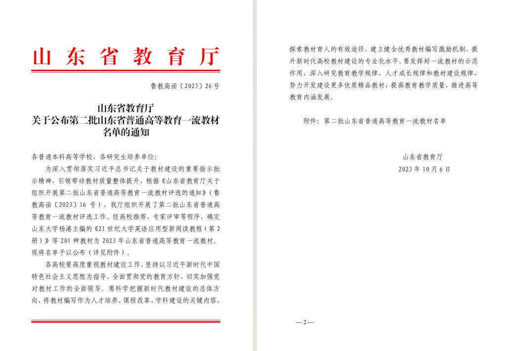 这是继我院徐瑞教授主编的《教育社会学》教材入选第一批山东省普通高等教育一流教材后,我院入选的第二部教材,是我院在教材建设方面取得的新成绩。学院将继续全方位推进教材建设工作,加大对教材工作的支持力度,鼓励广大教师编写更多的精品教材,充分发挥教材铸魂育人、固本培元的功能,扎实推进教材建设高质量发展。