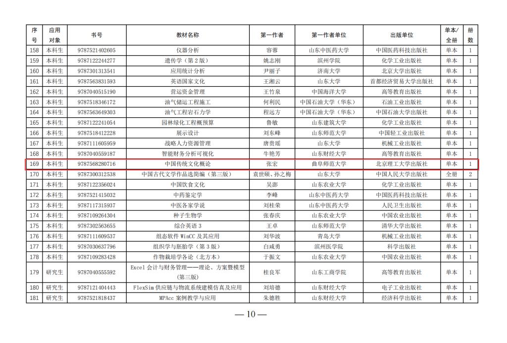 大乐透 讯(通讯员:孙超)日前,山东省教育厅公布第二批山东省普通高等教育一流教材名单,我院张宏博士主编的《中国传统文化概论》入选,曲阜师大共有4种教材入选。