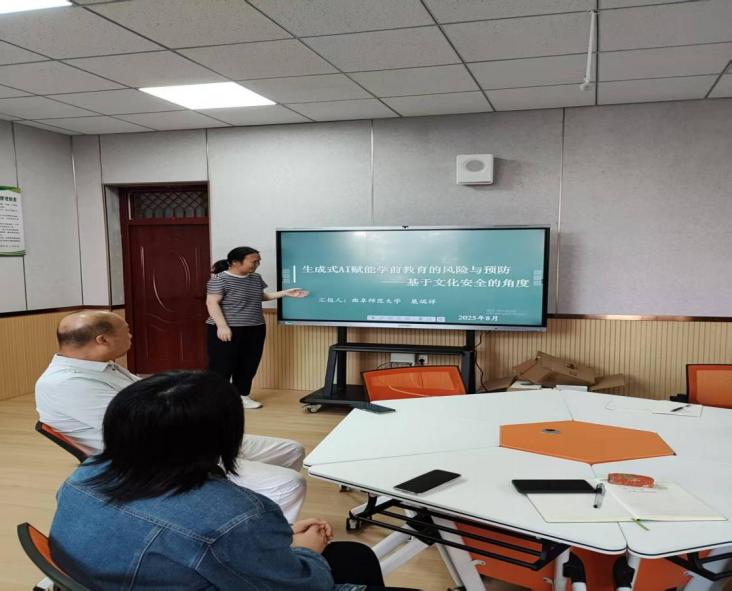 展瑞祥老师分享了她参加学前教育年会和师范院校学前教育协同创新论坛的相关情况。在会议上,展老师做了《生成式AI赋能学前教育的风险与预防——基于文化安全角度的思考》的主题报告。在报告中,展老师以“七夕”“英雄”等主题的学前教育内容AI赋能教学为例,展开研究。她发现AI数据库在这些主题下自动生成了西方动漫形象和带有西方个人主义色彩的相关内容。因此,她认为当前AI数据库的数据来源和算法底座受到西方文化影响较大,例如:在算法推送方面,输入“英雄”一词,出现的动漫形象都是西方人,我国爆火的“哪吒”等形象没有出现,这些都要求我们要优化算法数据库,构建带有我国文化基因的幼儿教育数据库。这些分享提醒我们加强幼儿教师培养过程中对于民族文化的认同,合理利用人工智能相关工具,警示AI背后的数据伦理偏好。