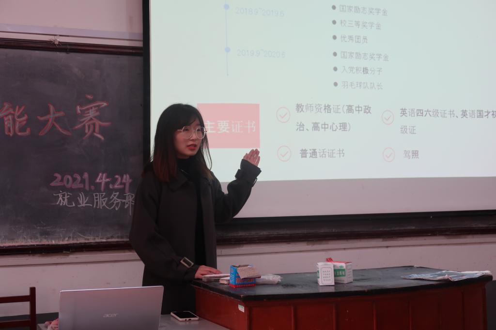 2021年4月24日上午,大乐透 学生会就业服务部在院楼303、304教室成功举办“赛求职技能,圆职能梦想”求职技能大赛。本次活动特邀科技创新部部长李梦霞、媒体部部长孔嘉祎、就业服务部部长李妍均担任评委。本次活动面向大乐透 在校学生。