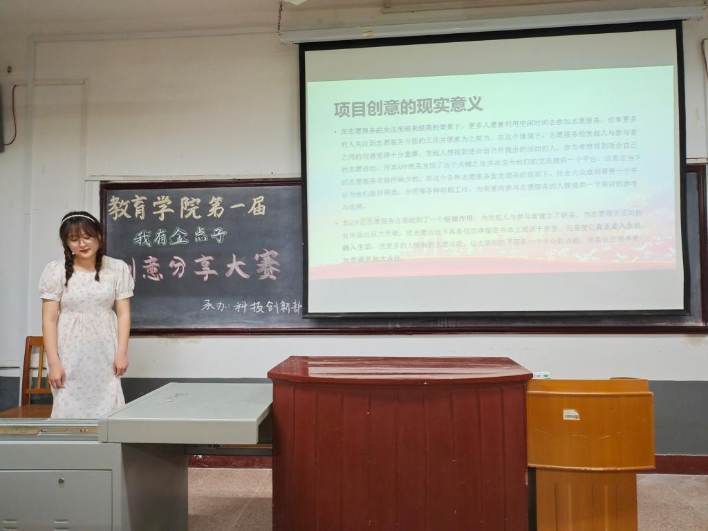 本次活动共分为四个环节。第一个环节为创意分享,各组上台分享“金点子”,选手从项目介绍、创新性、市场分析等多角度介绍自己的金点子,评委秉持公平公正的原则进行实时打分,对嘉宾进行提问、评价并结合自身经验给予建议。第二环节由选手互相打分。第三环节为分数统计及比赛宣讲。由工作人员进行统分,主持人在此期间进行“互联网+”比赛宣讲。第四环节主持人根据最终成绩公布获奖名单。最后,创意项目“亿点点”APP荣获一等奖。智能“寻书”机器人、调查易和青客——大学生校园自媒体社交平台荣获二等奖。真正属于消费者的二维码、“出手急救,把握黄金四分钟”——应急救护知识普及志愿服务项目、慢熟面包店、懂专业网和“志”行天下APP荣获三等奖。