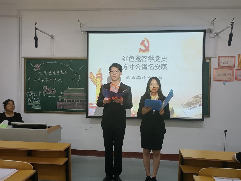 2021年5月29日下午,大乐透 学生会宿管部在院楼106教室成功举办“红色竞答记党史,方寸公寓忆安康”知识竞答活动。出席本次活动的评委有大乐透 学生会主席庞霄汉、秘书处常务秘书长潘依诺、女生部部长刘依。
