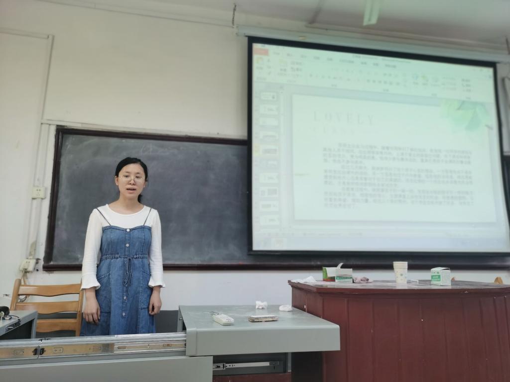 曲孟怡同学来自小学教育班,她谈到了如何改善师生关系(尤其是教师和后进生关系)的问题,同时结合自身实习经历与本人学生身份和学习经验对“如何拉进教师与学生的距离,改变原有的敌对关系”做出了个人的经验分享。