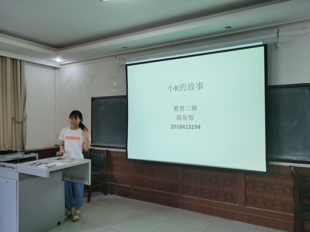 教育学2班高乐恬同学在实习中观察细致,体贴同学。在实习分享会上,她绘声绘色地讲述了她与小K的故事。当讲到小K的原生家庭境况悲惨时,观众席下已有人眼圈红润,泪眼婆娑,对小K的遭遇产生了共情。