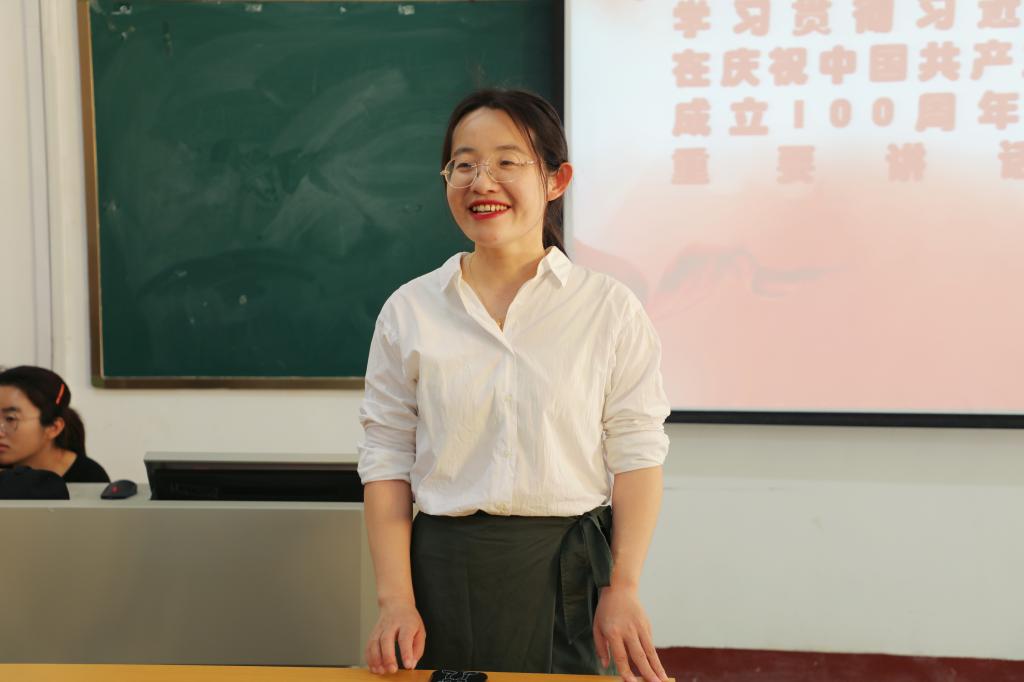 辅导员张东霞走上讲台,进行宣讲。