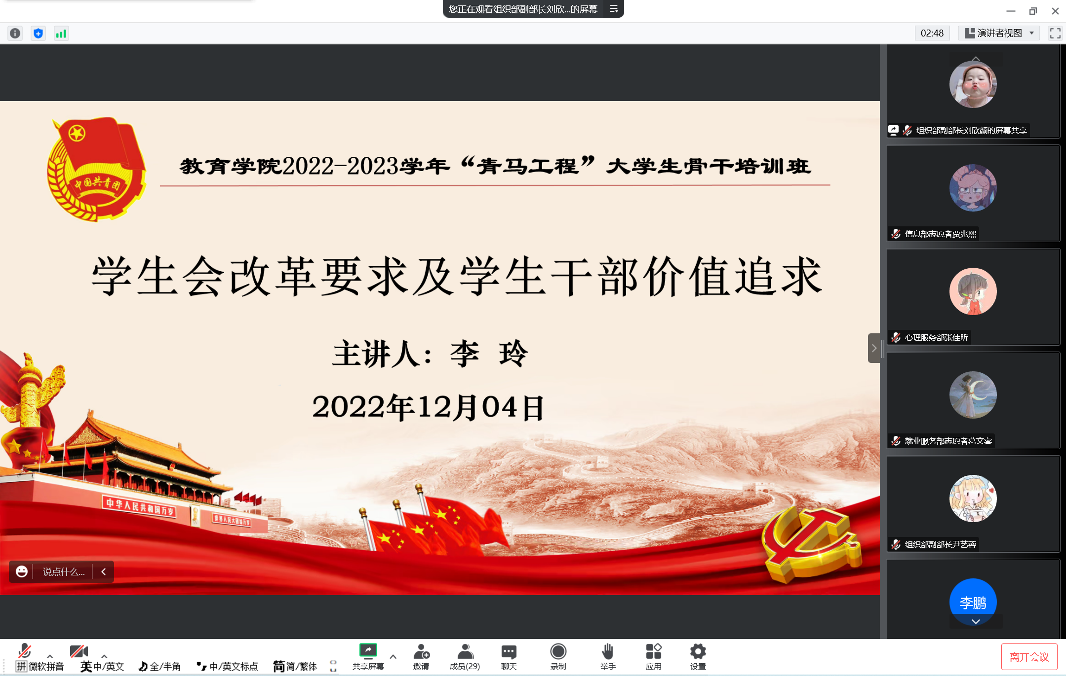 “青马工程”大学生骨干培训班第六讲以线上形式顺利开讲。本次课程由大乐透