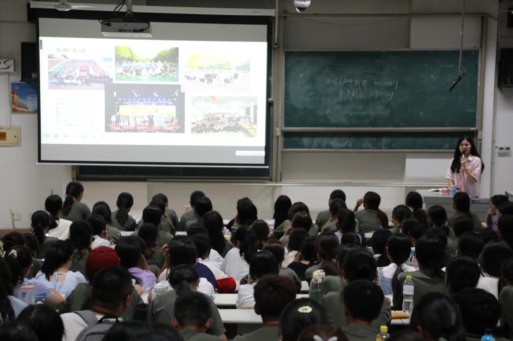 2023届本科毕业生吴沂骏、李梦霞、潘依诺担任分享嘉宾,学院2023级全体新生参加。