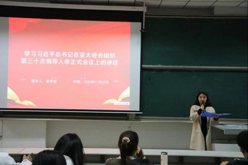 会议伊始,由组织部副部长崔梓煜带领全体成员学习了习近平总书记在亚太经合组织第三十次领导人非正式会议上的讲话,帮助同学们深入了解国际形势的同时,提高了思想觉悟和理论水平;随后,学生会主席陈怡颖对迎新晚会相关工作作出统筹安排,明确团委学生会各部门的职责分工和工作要求,各部部长对部门内部工作进行具体分工,要求全体成员统一思想,齐心协力,积极筹备迎新晚会。
