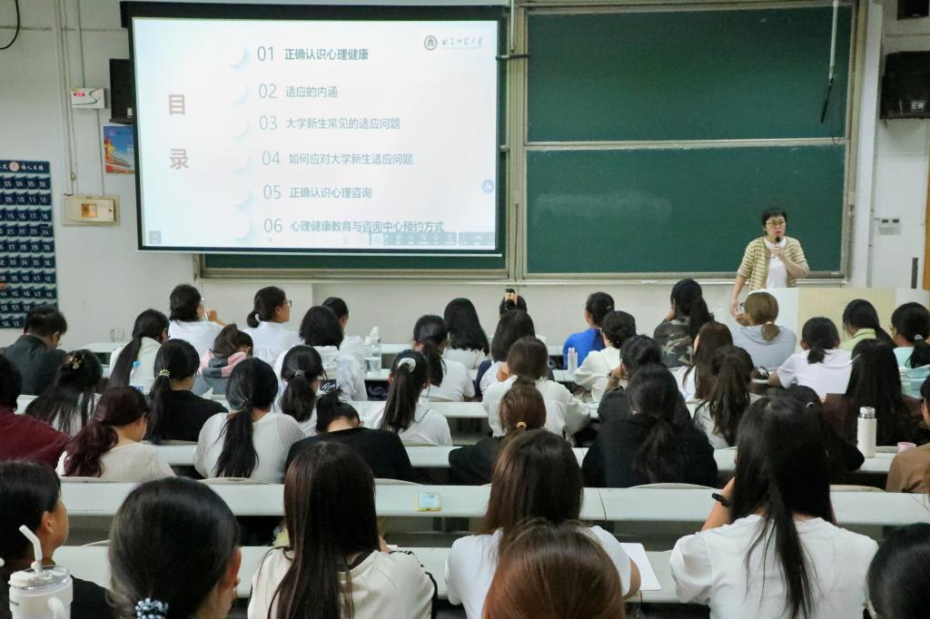 大乐透 讯(通讯员:侯怡帆  袁新雅)为增强新生的心理调控和适应能力,引导新生更好地融入大学生活,9月25日下午,大乐透 2024级新生心理健康讲座在综合楼306室成功举办。本次讲座由大乐透 心理辅导员王保英担任主讲,大乐透 2024级全体新生参加活动。