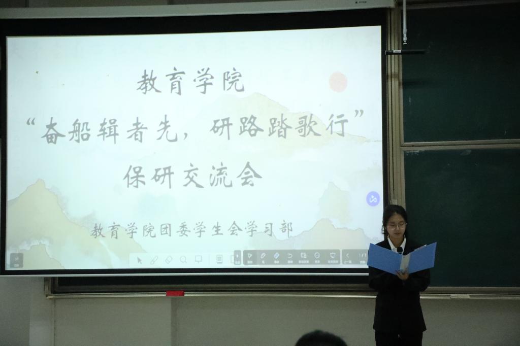 团委学生会学习部主办的“奋船辑者先,研路踏歌行”保研经验交流会于综合楼401室顺利举办。活动邀请已成功获取研究生推免资格的2021级优秀学生代表作经验分享,学院部分非毕业班本科生参会。