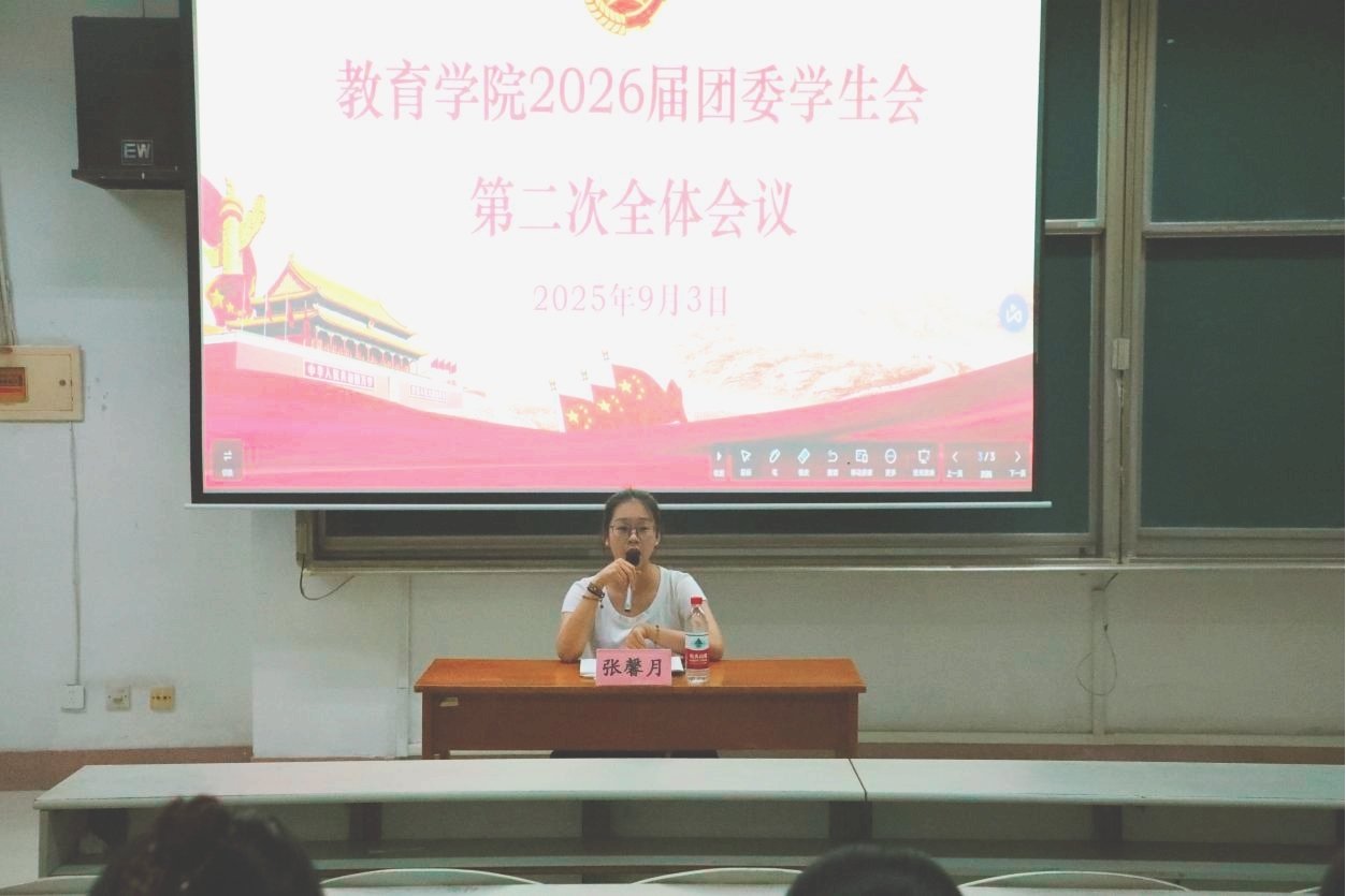 会上,组织部部长王艺静带领全体成员共同学习了习近平总书记的重要文章《弘扬伟大抗战精神,向着中华民族伟大复兴的光辉彼岸奋勇前进》。她强调抗战推动了民族的觉醒与团结,号召同学们铭记历史、捍卫和平,积极践行“三个必胜”的真理。