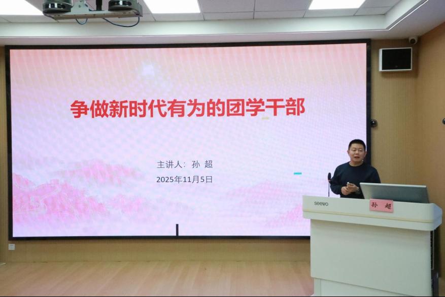 团学工作实际案例,强调团学骨干要深刻理解“两个确立”的决定性意义,坚决做到“两个维护”,在服务同学成长、繁荣校园文化、夯实基层团建中锤炼能力、展现作为。孙超要求全体学员必须恪守学生本分、涵养清风正气,以“功成不必在我”的境界和“功成必定有我”的担当,在火热实践中书写无愧于时代的青春答卷。