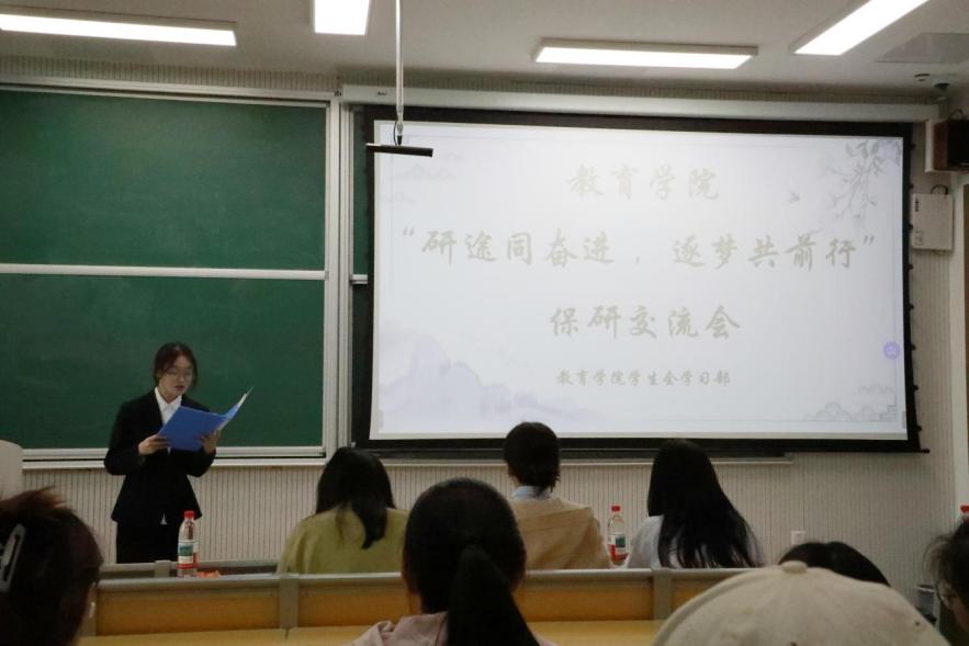 会上,2022级教育学专业刘奕娴、曹彦悦,小学教育专业刘佳怡、方玄支,学前教育专业谢雨晗、王一诺作为保研学生代表,结合自身经历,从保研基本要求、备考规划、材料准备、面试技巧等多个方面,细致讲解了保研过程中的重点难点与注意事项,为师弟师妹们规划未来发展方向梳理了清晰思路。