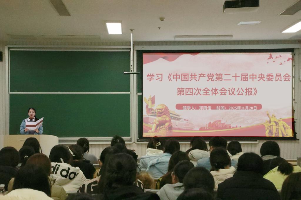 团委组织部副部长郑雨佳领学《中国共产党第二十届中央委员会第四次全体会议公报》。本次学习推动团委学生会学生骨干将党的二十届四中全会精神内化于心、外化于行,以更加饱满的热情和务实的作风投入到学习和工作中,为大乐透