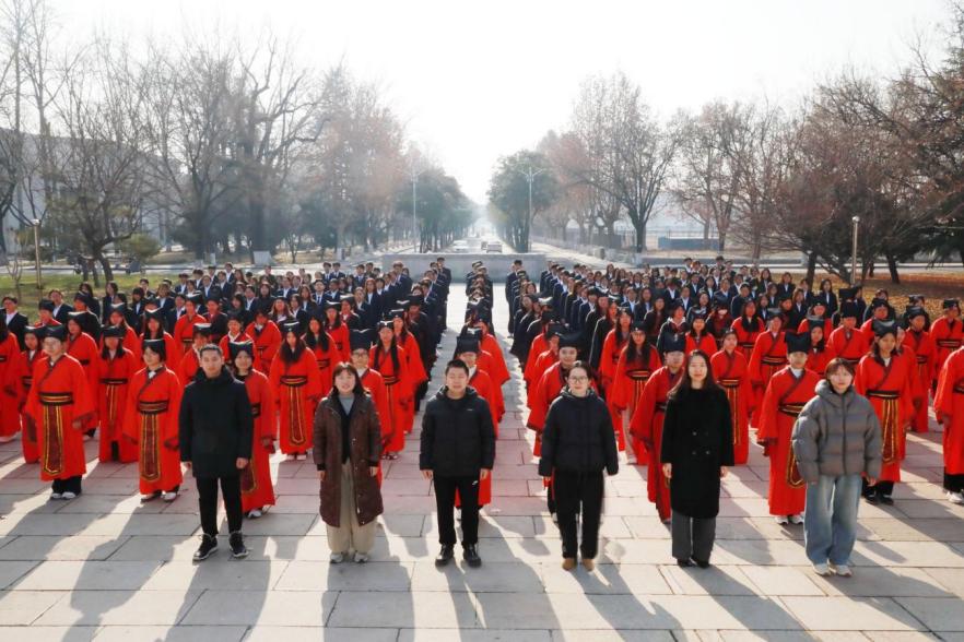 学子们跟随引赞官行“三揖礼”致敬先贤、感恩师长,动作庄重规范,尽显对先贤的敬畏与对师长的尊崇。