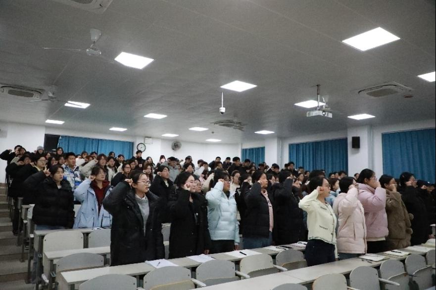 最后,全体学生干部庄严宣誓,承诺诚信应考、严守纪律,以表率作用带动全体学生营造风清气正的优良考风。