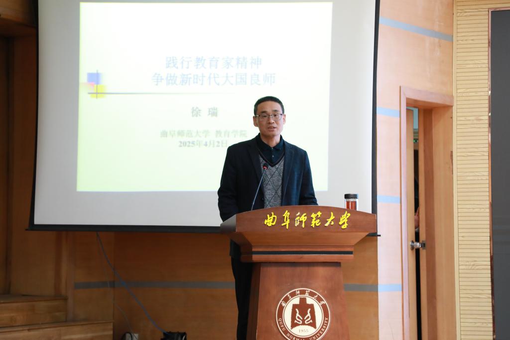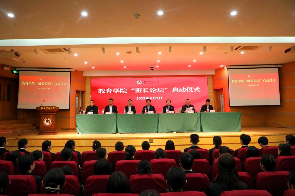 启动仪式后,徐瑞教授以《践行教育家精神,争做新时代大国良师》为题作了“班长论坛”第一讲。他在报告中深刻阐述了教育家精神的丰富内涵与实践要求,重点强调了“四有”好老师与教育家精神的内在联系。他指出,师范生务必深入领会教育家精神内核,将其内化于心、外化于行,不仅要扎实掌握理论知识,更要勇于立身实践,努力成长为担当民族复兴大任的时代新人,为教育强国建设贡献智慧与力量。