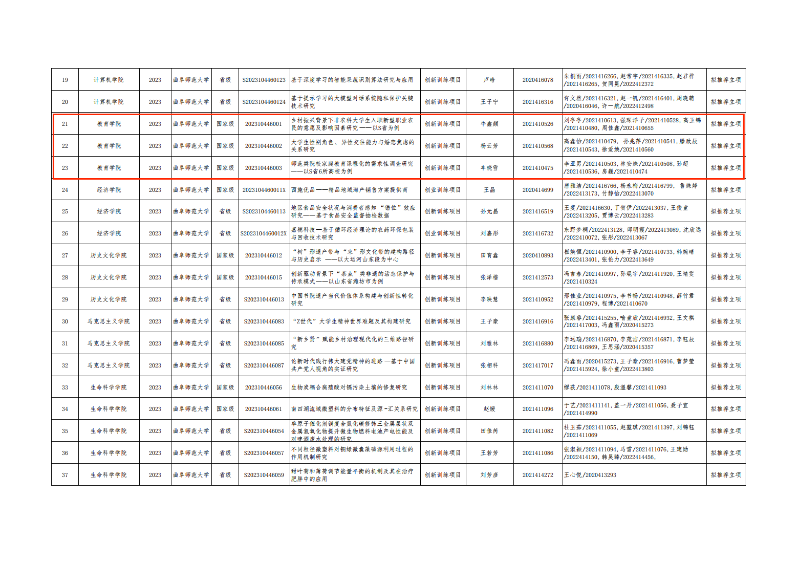 教院学子在2023年大学生创新创业训练计划项目申报中喜获佳绩