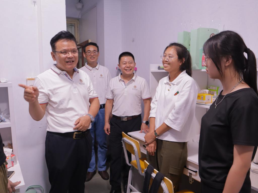 党委书记尹树林,院长唐爱民带领学院领导班子亲临现场指导迎新工作,走进宿舍看望慰问2023级新同学。