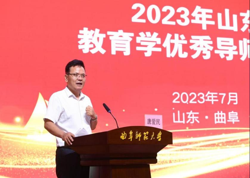 唐爱民院长在结业式上即席发表了热情洋溢、真挚感人、催人深思的讲话。他向出席本次工作坊的各位专家、同仁表示衷心感谢,希望各位学员在本次培训中学有所思、学有所悟、学有所获,以积极进取的心态和饱满的工作热情投入山东省教育科学人才培养、科学研究、教育变革的事业中;希望每一位研究生导师自觉树立教育学者的专业尊严与师者使命,通过专业品质的自我修养与实践反思,在与研究生的共生共长中实现导学关系的双向促动,成为研究生学术发展与专业成长的领跑者、助跑者、陪跑者,以高质量高品质的专业劳动,共谱山东省研究生教育高质量发展的新篇章。