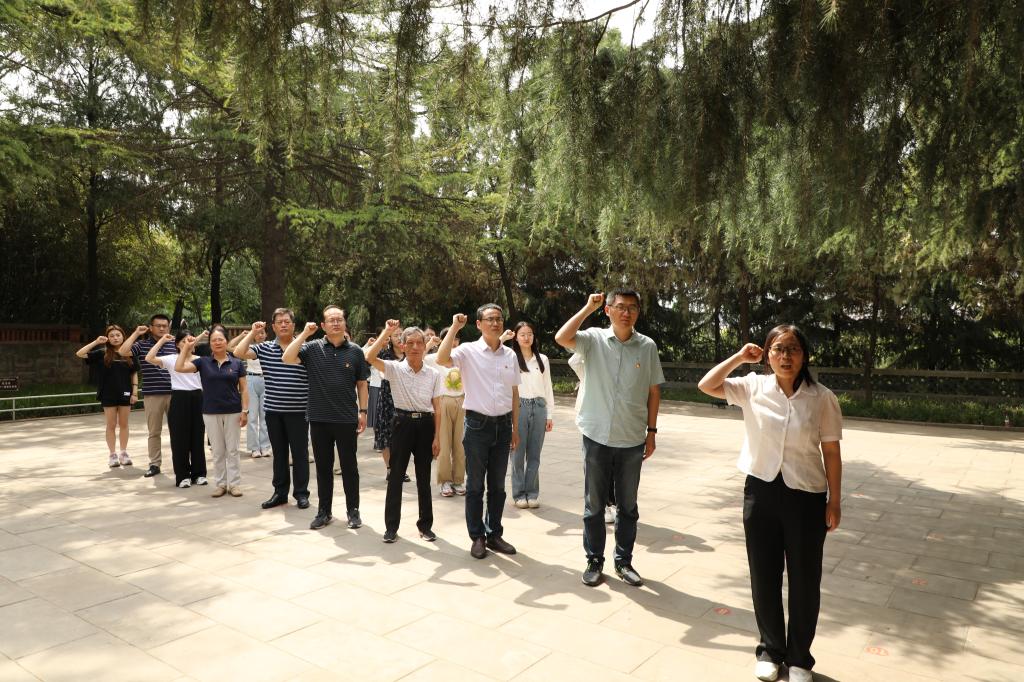 在羊山烈士陵园,同志们瞻仰了革命烈士纪念塔、革命烈士墓群。在烈士墓前,大家默默伫立,深深三鞠躬,随后同志们在革命烈士墓群前敬献花篮。随后,党员同志们高举右拳,面对鲜红的党旗,重温入党誓词,缅怀革命先烈,增强“不忘初心、牢记使命”的责任感和使命感。