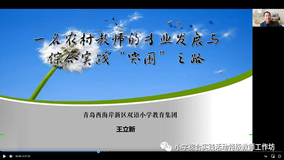 教育系主任李凯博士,分别围绕综合实践活动、劳动课程做了专题报告,山东省小学综合实践特级教师工作坊主持人李允教授主持报告。
