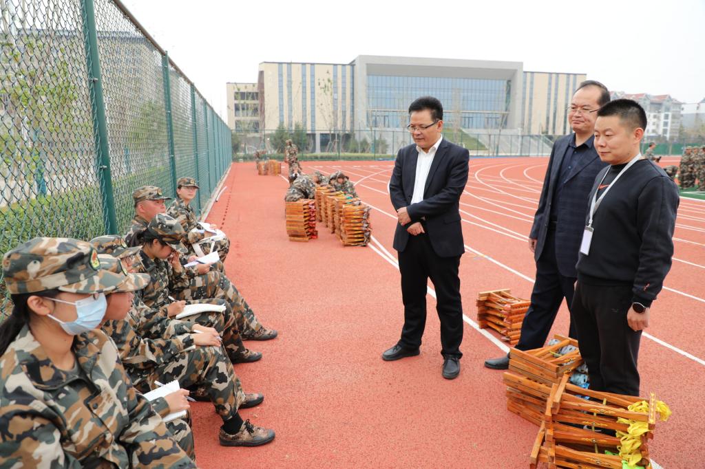 党委书记尹树林、院长唐爱民、党委副书记孙超来到学校西校区新生军训场地,慰问2022级军训新生。