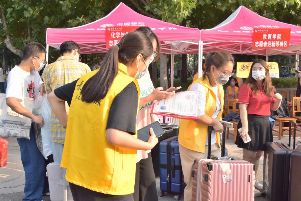 2022年本科迎新工作首次实行“点对点”“一对二”“实时在线”的精准迎新模式,坚持“迎进来,带上路”的原则,为新生提供全过程、全方位的贴心、暖心服务。全院学生党员齐上阵,积极参与到迎新活动中,冲锋在迎新工作第一线,亮明身份、彰显担当,充分发挥了党员先锋模范作用;迎新志愿者们身穿黄马甲,穿梭在校门口、报到现场和学生公寓之间,帮助新生顺利完成入学报到各项工作。
