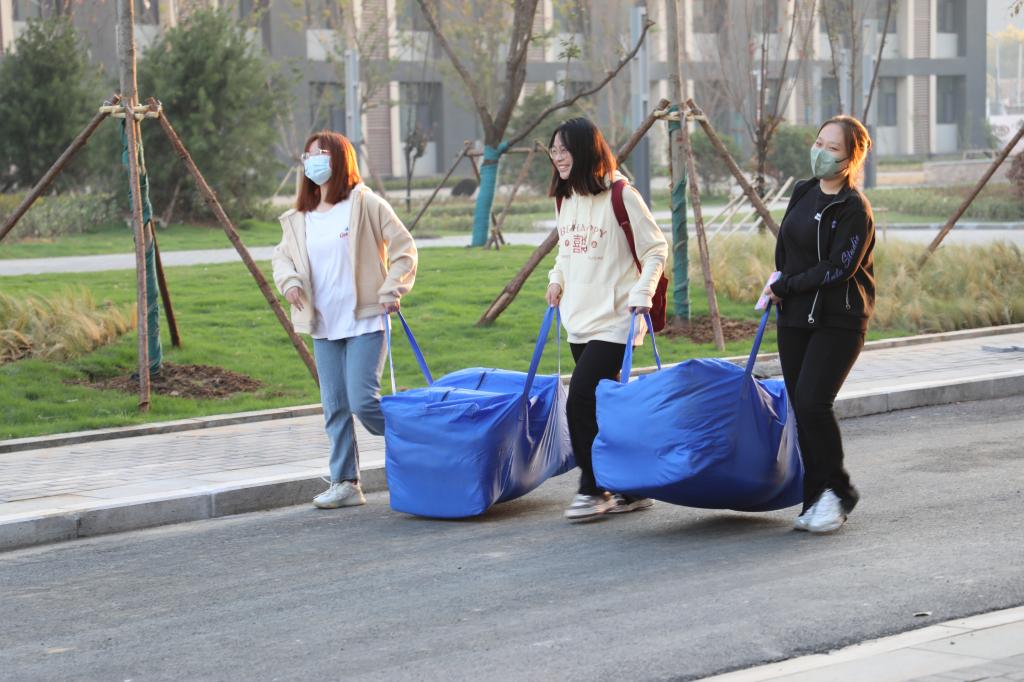 搬运分发现场,同学们互帮互助、协同合作,有序将被褥从货车搬运分发到每一个新生宿舍,为新生提供贴心的服务,保证新生入学后顺利入住。搬运分发过程分工清晰、高效有序。最终,在大家的共同努力下,工作得以圆满完成。