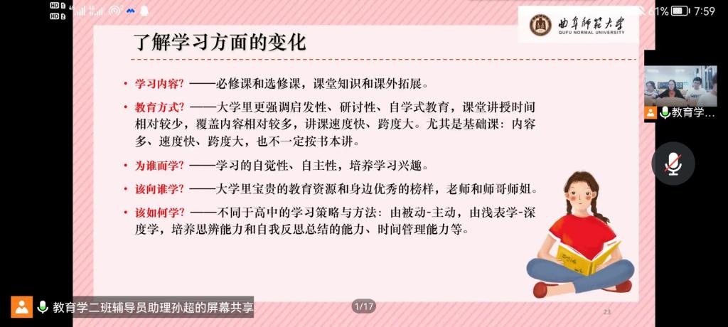 王保英老师从正确认识心理健康、适应的内涵、大学新生常见的适应问题、如何应对大学新生适应问题、了解心理咨询、心理咨询的预约方式等六个方面,对大学生的心理问题进行深刻剖析,并针对大学生中常见的心理困惑进行了耐心细致的答疑交流。王老师指出,心理健康是一种状态、一个过程。进入大学后,同学们更应积极调整自己的心态,寻求专业帮助,用“心”过好自己的大学生活。