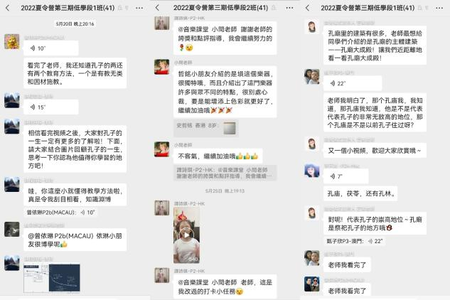 线上课堂气氛活跃,港澳青少年们学识广博,对于我国的优秀传统文化更是充满兴趣。“我觉得孔子是一个很好的教师,因为他从小就热爱学习,有耐心,这一点是值得我们学习的。他用有教无类的方法教学生,不管是贵族还是平民,只要真诚学习,他都会教,他就是用因材施教的方法让子路变成了好学生。”来自我国澳门地区的曾依琳小朋友总是能够很高效地完成各项打卡小任务,对于儒家文化,她并不局限于课堂上的内容,主动学习相关知识,同大家分享了许多自己对于教育家孔子的理解与认识。在港澳青少年学员们好学、好问、好探索的影响下,大乐透 港澳语言文化交流团队成员设计的系列课程内容更具延展性。