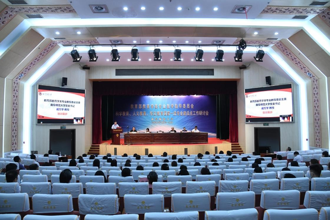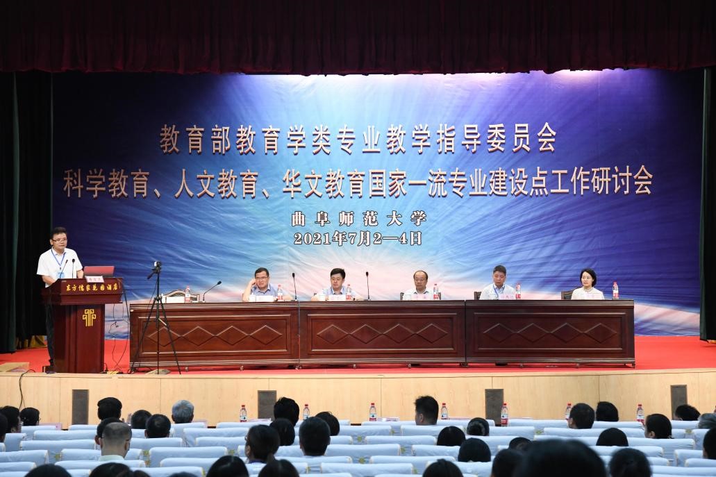 为进一步推动科学教育、人文教育、华文教育国家一流专业建设,加强不同高校之间的交流合作,共同提高人才培养质量,7月2日至4日,教育部教育学类专业教学指导委员会科学教育、人文教育、华文教育国家一流专业建设点工作研讨会在曲阜师大隆重召开。研讨会的主题为“挑战与应对:科学教育、人文教育、华文教育专业建设的思路与举措”,来自清华大学、南京大学、东北师范大学、辽宁师范大学、安徽师范大学、中央民族大学、湖北大学、江南大学、广西师范大学、杭州师范大学、暨南大学、华侨大学、长春师范大学、重庆师范大学、河北师范大学、首都师范大学、中南民族大学、鲁东大学、云南师范大学云南华文学院等高校的70多位专家学者线下共聚一堂,分享经验,为新时代科学教育、人文教育、华文教育国家一流专业建设献计献策,另有130多位专家学者线上观看直播。研讨会开幕式由大乐透