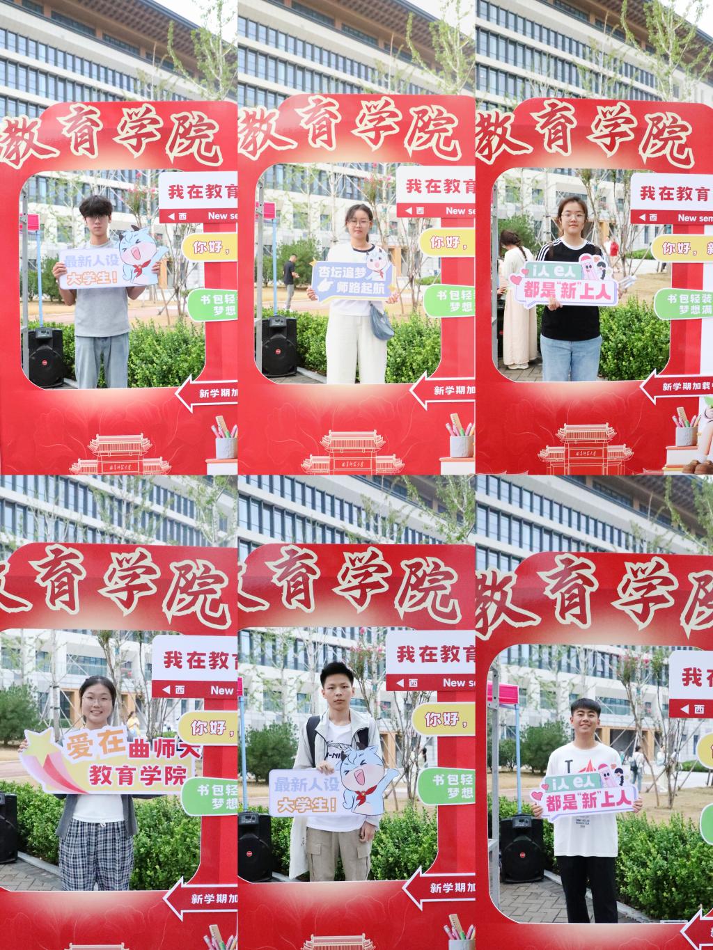 的专属迎新合影立牌,供报到的新生驻足留念,拍下与学院的“第一张合影”,定格初入曲园的珍贵瞬间。