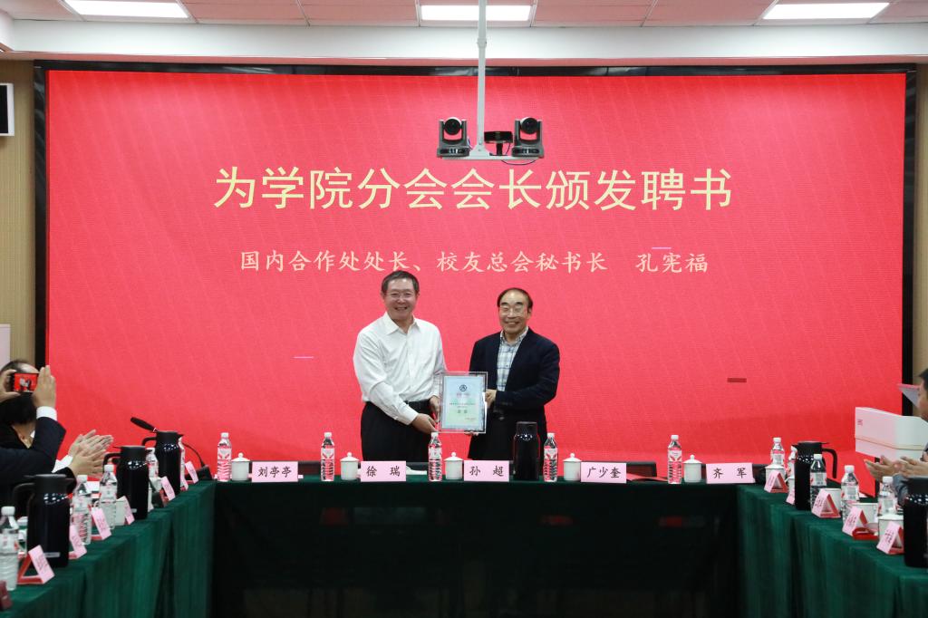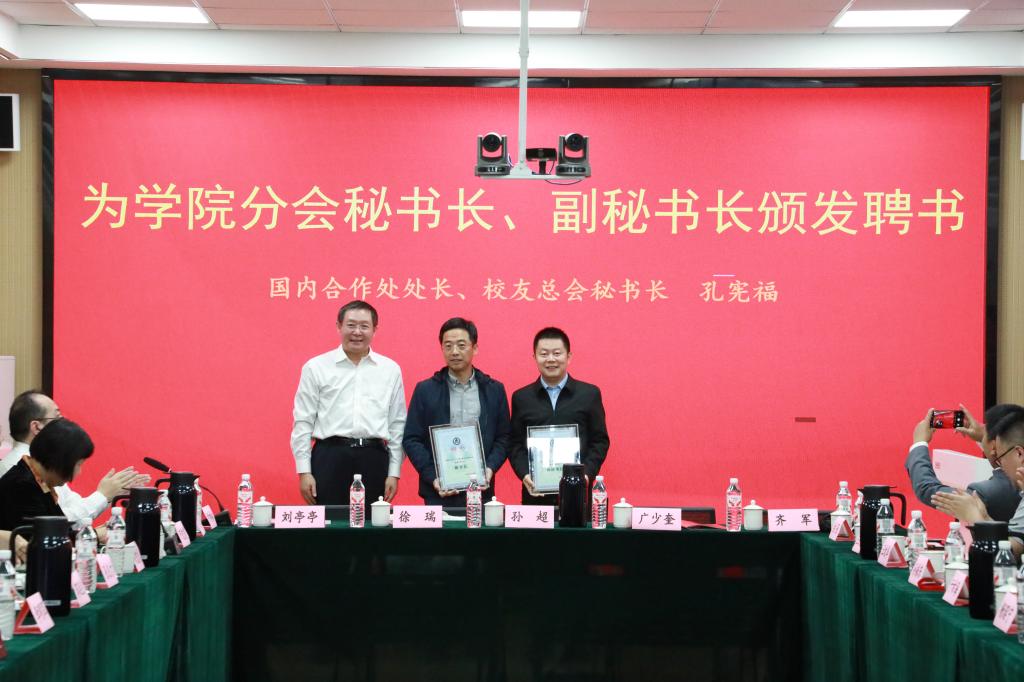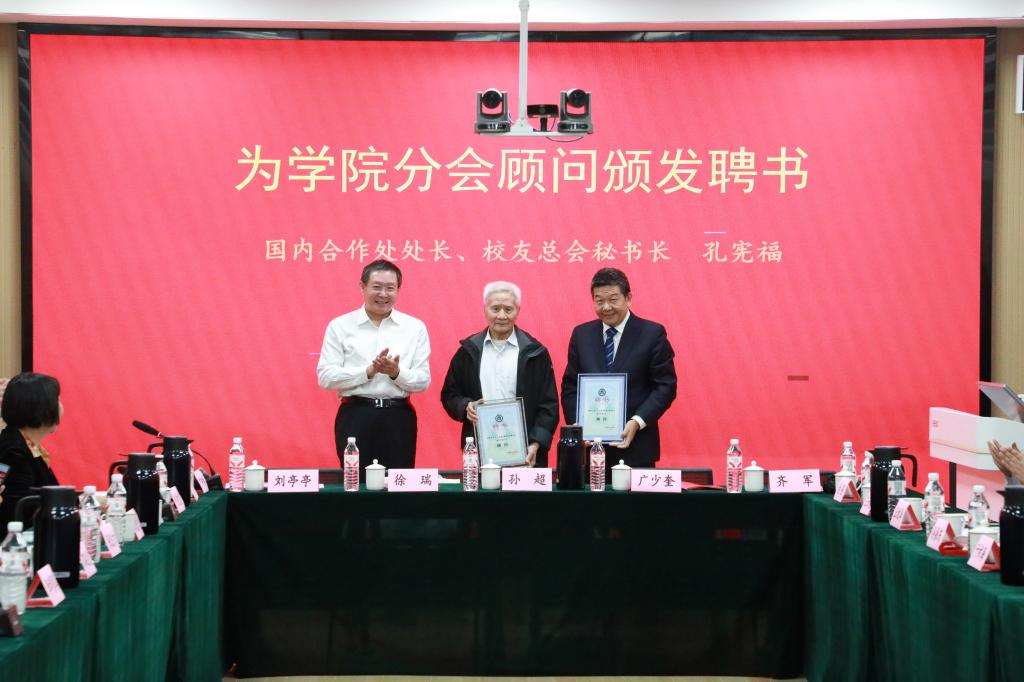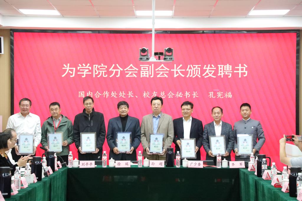 会议审议并通过了学院校友分会理事会成员建议名单,选举产生了分会顾问、会长、副会长、秘书长、副秘书长等。在与会嘉宾和校友们的共同见证下,孔宪福为学院分会顾问、会长、副会长、秘书长等颁发聘书。