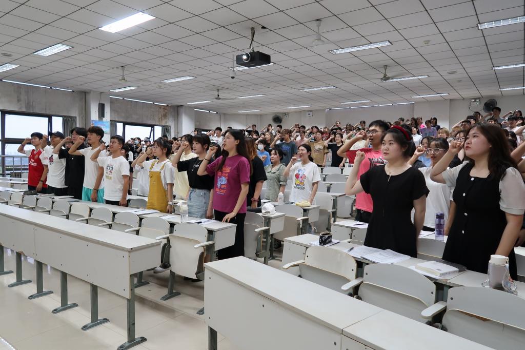 会议第一项,周长缨老师发表讲话。周长缨老师对学生会干部在运动会、合唱比赛等活动中的优异表现给予肯定,指出在活动结束后总结经验教训的重要性。同时,周老师强调了诚信考试的重要性,表明学生会干部应发挥榜样作用、以身作则。并且鼓励学生会干部发挥桥梁作用,切实加强老师与学生之间的沟通与交流。会议第二项,学生会主席庞霄汉带领全体同学宣誓诚信考试誓词。会议第三项,庞霄汉对学生会本学期的工作做出简要总结。