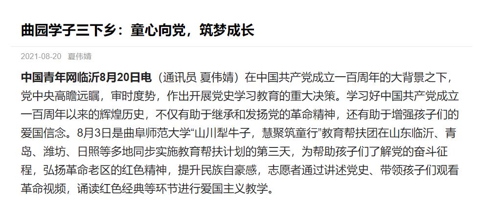 中青网:曲园学子三下乡:童心向党,筑梦成长