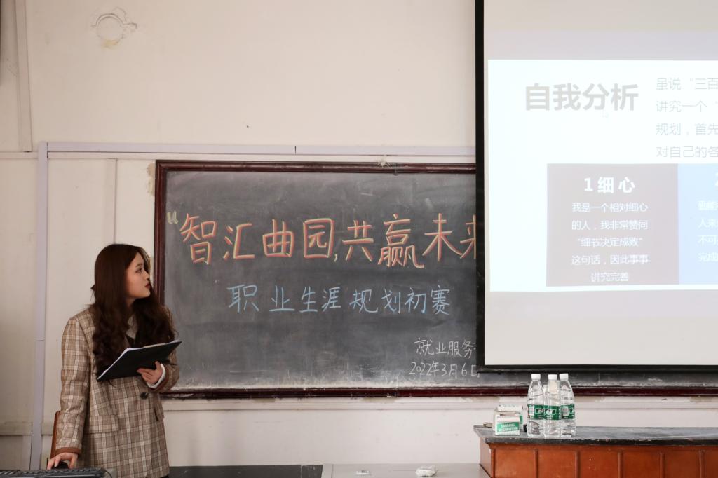 学生会就业服务部“智汇曲园,共赢未来”职业生涯规划初赛在学院303教室顺利举行。比赛评委由院学生会科技创新部部长李梦霞、秘书处副秘书长王芸霄、纪检部副部长高兴蓉担任。
