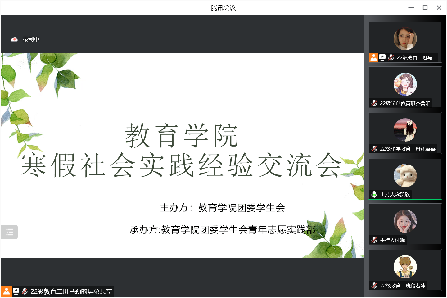 寒假社会实践经验交流会于线上顺利召开。本次交流会由院学生会青年志愿实践部承办。