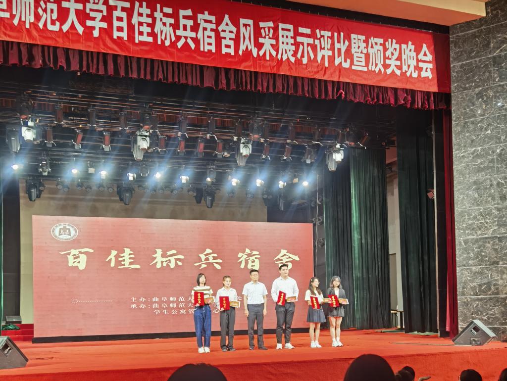 在学校隆重举办的“百佳标兵宿舍风采展示评比暨颁奖晚会”活动现场,2021级教育学一班西公寓6#613宿舍同学通过PPT展示了宿舍良好的生活学习氛围、介绍了宿舍每一位同学精彩的大学生活和取得的优异成绩,并为师生奉上了由宿舍同学精心编排、自导自演的光影戏——《我们的大学》,以别出心裁的形式将大学四年融汇在一场光影戏当中,惟妙惟肖地展现出室友之间浓厚的情谊和曲园学子青春向上、团结进取、追求卓越的优良品格。