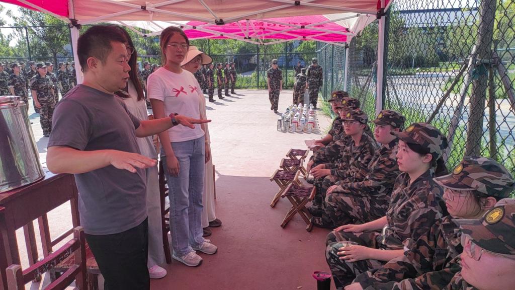 党委书记尹树林,党委副书记孙超,团委书记张东霞,2024级新生辅导员曹亚楠、商雪敏走进新生军训现场,为2024级军训新生送去亲切的问候与关怀。