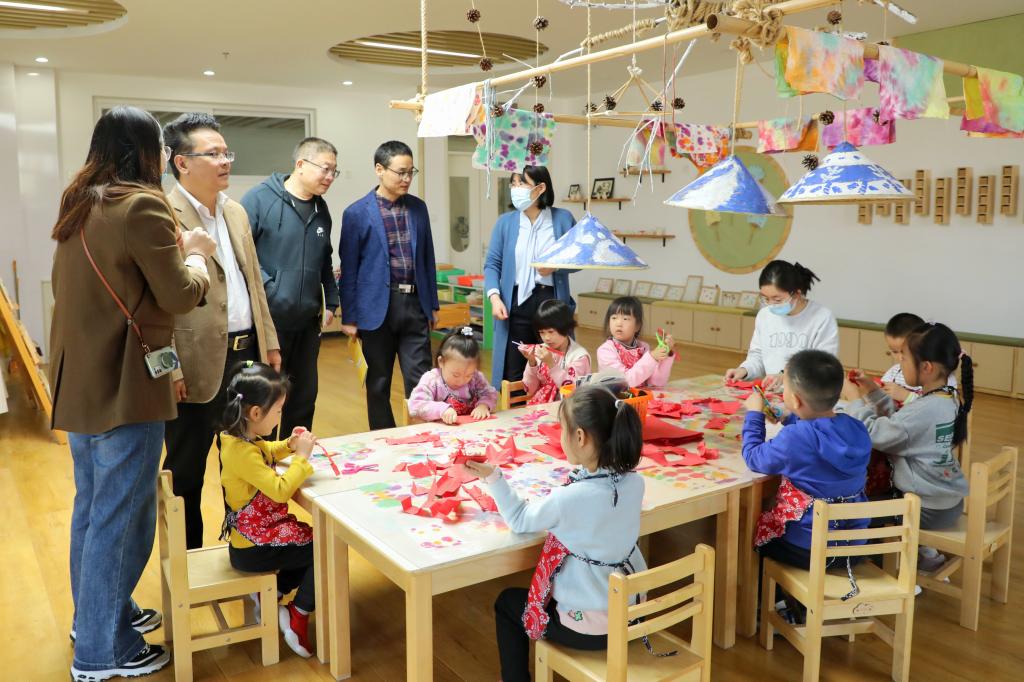 “学前教育政策与管理研究基地”)挂牌仪式。在曲阜市机关幼儿园领导的陪同下,唐院长一行参观考察了幼儿园的文化建设与课程建设成绩展示,深入幼儿园教室、活动室开展现场调研,与师生互动交流。