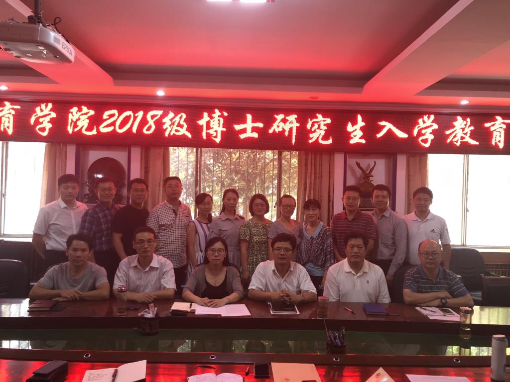 及各位导师,促进同学们快速融入新集体,9月12日下午三点我院于101会议室召开2018级博士研究生入学教育会议。参加此次会议的有我院党委书记姜美颖,院长唐爱民,党委副书记徐庆海,副院长张奎明、何文广、徐瑞,研究生辅导员李令青,教学秘书张婷以及10名博士研究生,会议由姜书记主持。