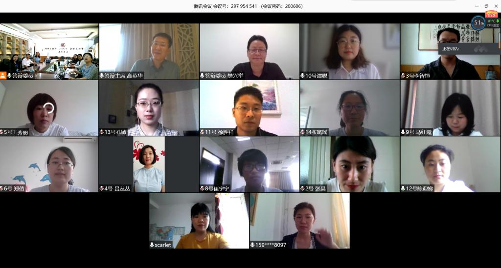 为保障答辩工作顺利开展,学院领导高度重视,研究制定出详细的答辩工作程序,组织线上答辩秘书培训会议,反复开展设备使用培训及前期调试。每组秘书分别对答辩小组进行模拟演练,并通过微信、QQ等社交软件,解决回答学生的各种问题,确保特殊时期答辩工作和学位论文质量“不缩水”。