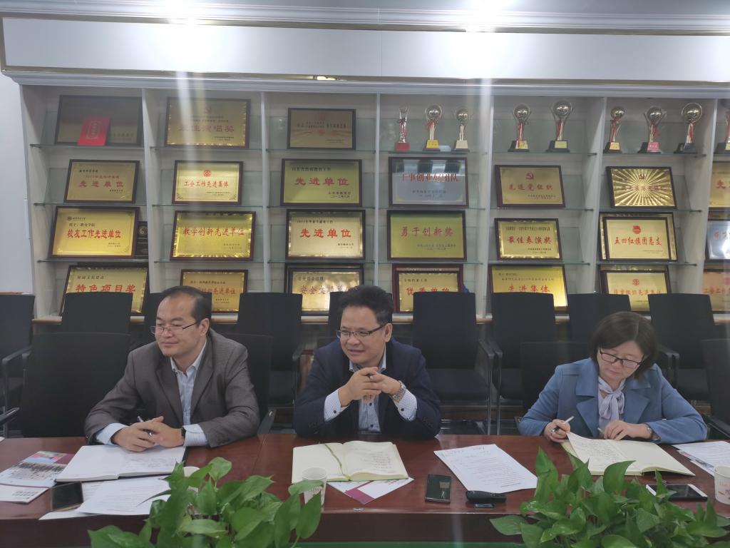 10月15日上午,学校国际交流合作处申同武处长与国际大乐透 朱献贞院长一行到大乐透 开展工作调研,全面了解学院国际化办学的相关需求和规划情况。大乐透 党政领导班子成员参加调研座谈。