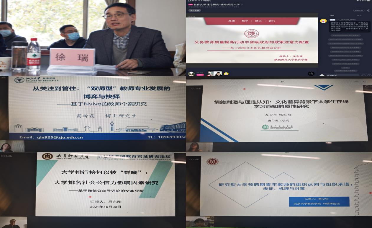 齐军副院长、刘亭亭副院长及学院部分师生现场参加了论坛,按照疫情防控要求,其他师生线上参加了论坛,线上参与教育扎根理论分论坛的人数达到2100余人次。