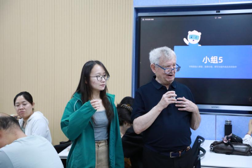 首周讲座中,Waks教授以深厚的学术造诣,系统梳理了杜威教育哲学的理论体系与发展脉络。6月16日的开幕讲座上,Waks教授围绕杜威认识论思想展开,介绍了它在教育领域的改革应用。他认为,杜威的认识论哲学思想带有功能心理学和实验实用主义色彩。正是基于此思想,杜威批判传统教育脱离现实,主张“做中学”,认为教育应与社会生活结合,让学生在实践中学习。从发展脉络来看,杜威的实用主义思想受皮尔士和詹姆斯影响,强调知识发展无需专门灌输,真正的探究需在共同体合作中完成,这对教育和社会发展意义重大。