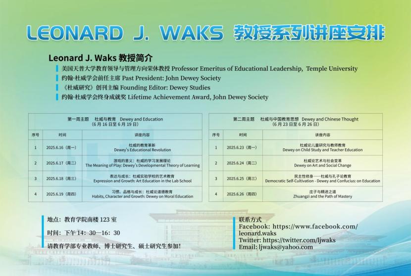 教育学部特邀约翰·杜威学会终身成就奖获得者Leonard J. Waks教授作系列学术讲座